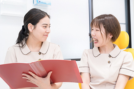 本校では、学生の実習中の不安を解消するためにチューター制度を用意しております。フォロー担当として「ひまわり歯科」の歯科衛生士が付き、あなたの実習をサポートします。また、将来の仲間を育てるという意識を持ったスタッフが「すぐ活躍できる歯科衛生士」になれるよう優しく丁寧に指導をいたします。